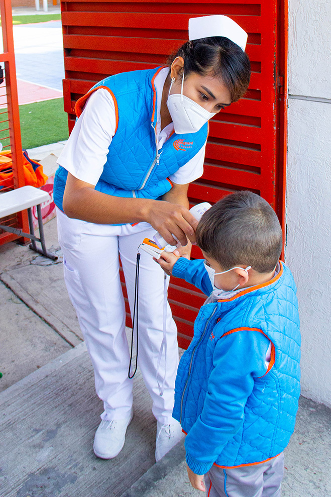 ● Medidas preventivas de seguridad sanitaria: toma de temperatura, toma de oximetría, lavado de manos, uso de cubrebocas, sana distancia, estornudo de etiqueta, ventilación.